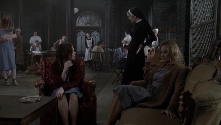 Não comecei por ver a primeira temporada, a que só assisti recentemente. Caí de pára-quedas na segunda, "Asylum". E devo dizer que durante dois ou três episódios fiquei de boca aberta sem saber o que pensar. "Hospício" é um bom título, porque tudo aquilo me parecia uma doidice de uma mistura sem pés nem cabeça, um esmagador exagero de histórias e sub-histórias de terror, como se fosse a obra de alguém a quem tivesse sido dada oportunidade de fazer uma única série, e essa apenas, e tivesse querido meter tudo lá dentro: um hospício de freiras nos anos 50 (coisa já por si bastante assustadora, mesmo sem os choques eléctricos e os castigos corporais), uma história de lésbicas, uma ninfomaníaca, um psiquiatra serial killer, uma freira possuída pelo Diabo, um médico nazi fugido da Europa que faz experiências com os pacientes, e como se isto tudo não bastasse, e até acho que me estou a esquecer de qualquer coisa, extra-terrestres que vão e vêm e abduzem e devolvem quem lhes apetece! Uma salada russa de horror! Mas afinal a loucura era propositada.